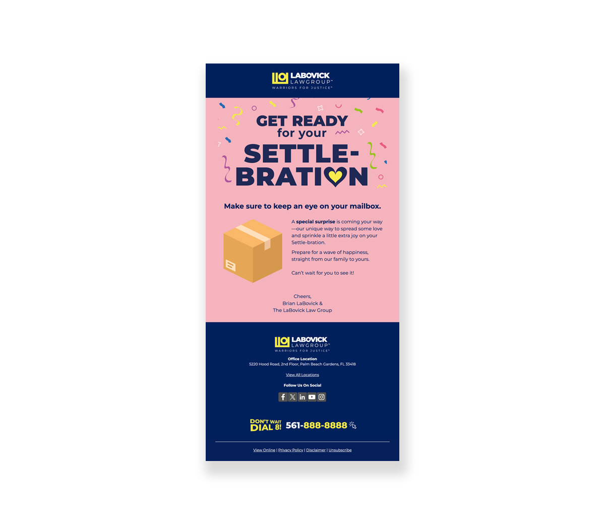 - Community newsletters blend fun and seasonal content with practice area insights, keeping your firm top of mind.